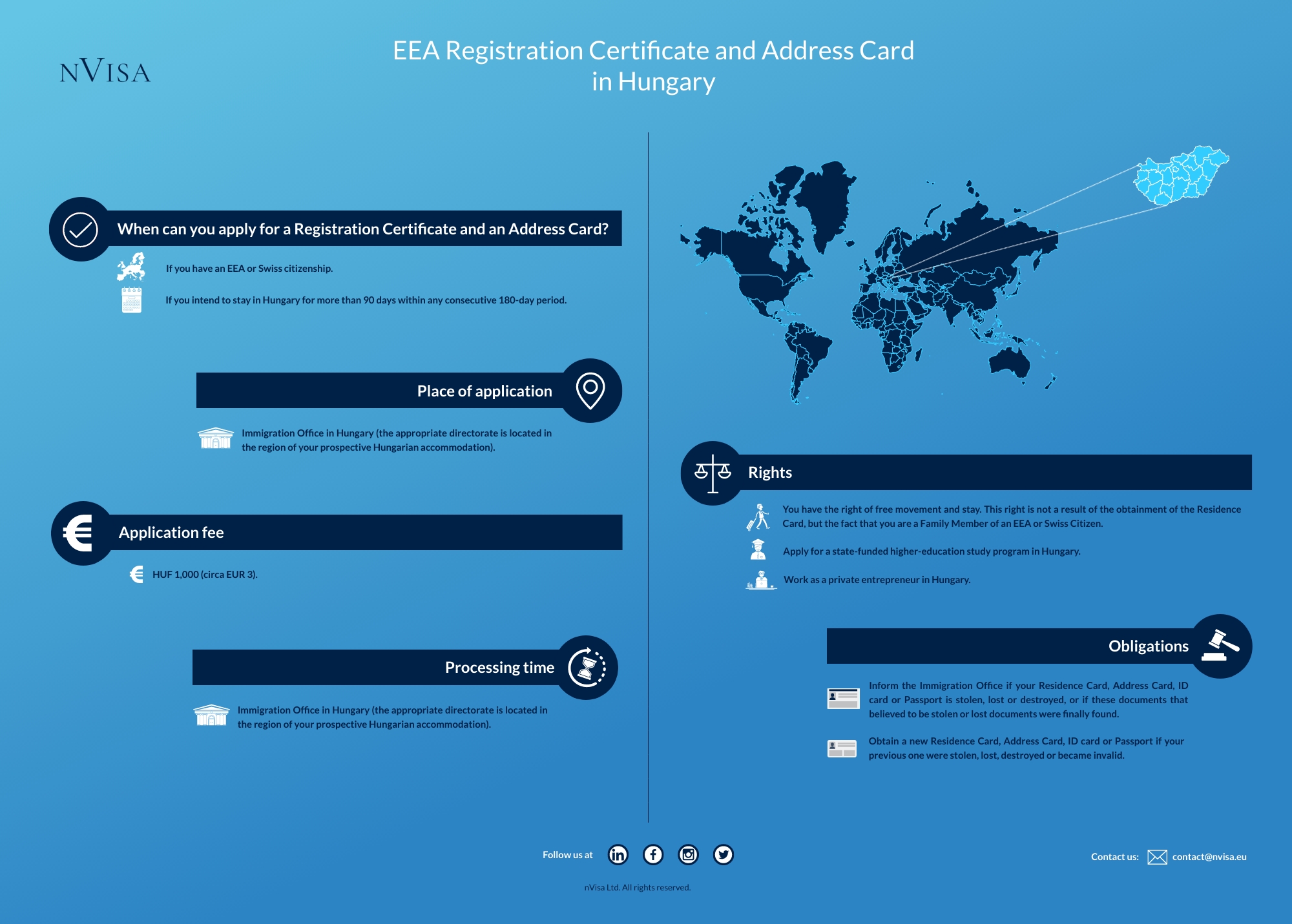 The EEA Registration Certificate is issued in the Immigration Office at the time of the application. The Hungarian Address Card is posted to the registered Hungarian address within circa 2-3 weeks from the date when the EEA Registration Certificate is issued.